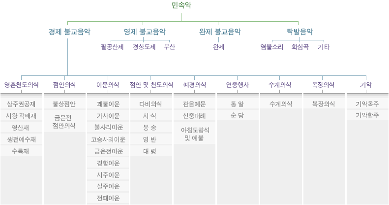 거 불 / 거령산 / 관욕게 / 그외 반짓소리(옹호게, 창불) / 단정례 / 두 겁 / 목욕진언